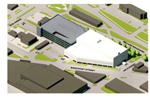 The second option would construct a 106,000 two-story building with parking underneath plus a garage, while the third features a three-story, 110,000 square foot building and separate four-story garage.