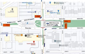 City officials said it may take all day to make the repair at Bellaire Boulevard and South Rice Avenue, and they have closed the intersection and outlined detours for motorists (see accompanying map).