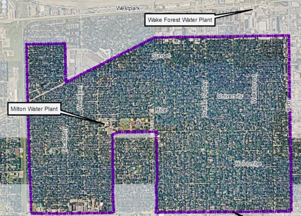 That is not to say that there aren’t issues that need to be resolved. As of this writing, West U residents on Law Street are not supplied with water by West U, but are instead on COH water, because the rights-of-way in front of their homes lie within COH, not West U. West U is, however, in the process of resolving this, and those residents should soon be able to enjoy the same confidence in their water supply as other West U residents do.