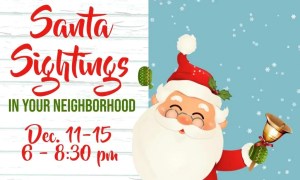The annual “Santa Sightings” bring the jolly man throughout Bellaire on a city emergency vehicle with a police escort, sirens sounding, horns tooting, lights flashing, from 6-8:30 p.m. Monday through Friday.