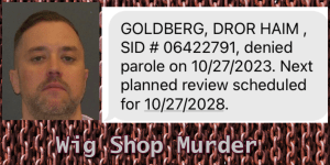 Dror Haim Goldberg has been denied parole for the 1998 Weslayan Plaza “wig shop murder” and won’t get another shot at lessening his 45-year sentence until October 2028, Andy Kahan of Crimestoppers of Houston confirmed Friday (Oct. 27).