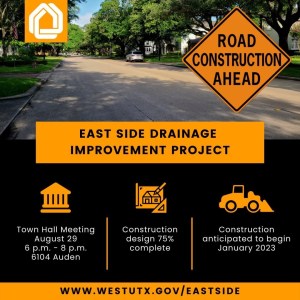 Additional information about the drainage improvement project is available by emailing eastside@westutexas.gov or calling 713-662-5845.