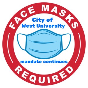 Despite the governor’s lifting of a mandate to wear masks as protection against COVID-19, the city of West University announced Monday (March 8) it will continue to require anyone entering city facilities to be wearing a face covering.